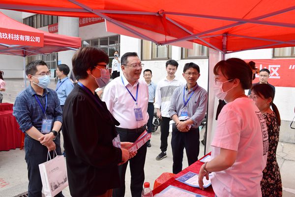 博约楼南广场上,150家用人单位招聘展位依次排列,招聘岗位虚位以待,现场熙熙攘攘,人头攒动,气氛热烈。下午2时30分许,院领导和省大中专毕业生就业指导中心领导、合肥市蜀山区人社局领导等先后来到招聘会现场,驻足就业创业指导咨询和应征入伍宣讲服务台,了解学院相关工作开展情况;来到用人单位招聘展位前,与招聘人员交流,了解企业发展、招聘需求、岗位要求等,欢迎并感谢用人单位冒着高温来学院开展招聘;与前来求职的毕业生亲切交谈,询问所学专业、求职意向等,勉励他们大胆展示、接受挑选,希望他们早日找到理想的工作。