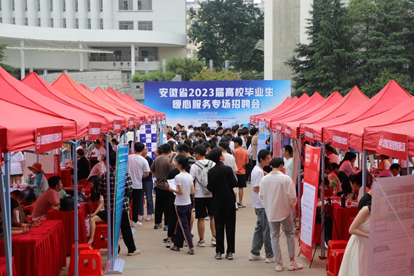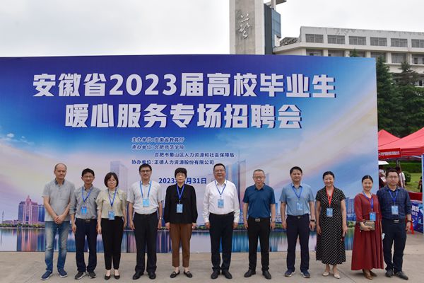 本网讯 为深入学习贯彻党的二十大精神,落实党中央、国务院和省委、省政府关于高校毕业生就业工作决策部署和工作要求,在毕业生就业关键期开展并实施好“百日冲刺”行动,5月31日下午,由省教育厅主办、我院承办的安徽省2023届高校毕业生暖心服务专场招聘会在锦绣校区博约楼南广场举行。省大中专毕业生就业指导中心主任张秋田,省大中专毕业生就业指导中心发展培训部部长刘斌,合肥市蜀山区人力资源和社会保障局党组书记、局长谷和亮;我院党委书记徐成钢,党委副书记、院长方东玲,党委委员、副院长周端明等领导深入招聘会现场指导并与用人单位代表和毕业生亲切交流。