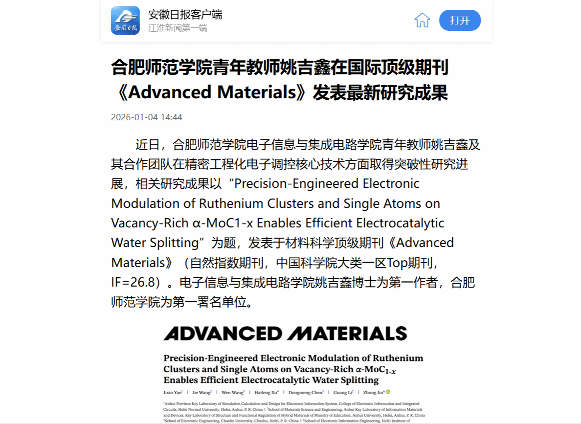 《安徽日报》报道beat365教师在国际顶级学术期刊发表论文
