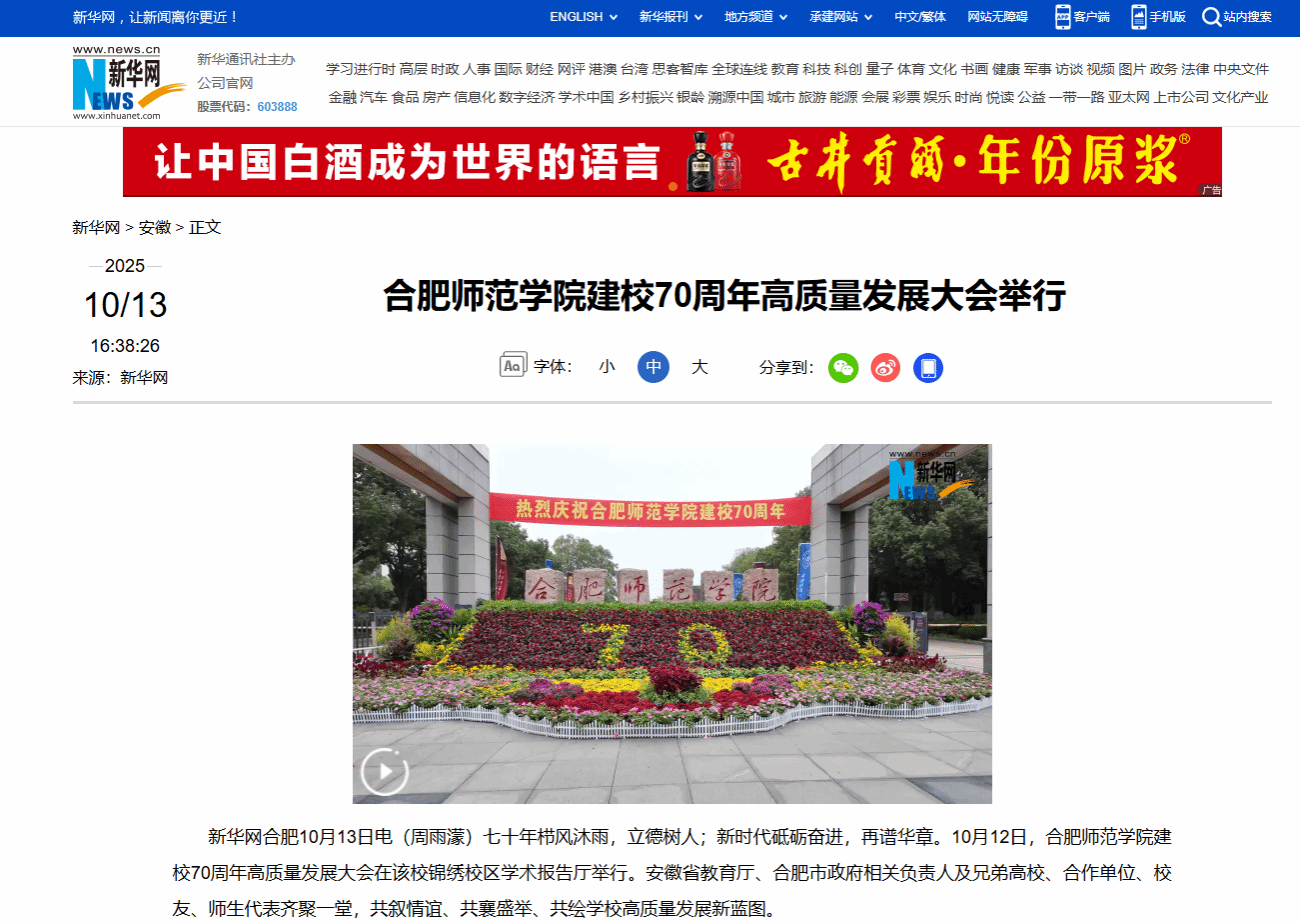新华网报道学校举办建校70周年高质量发展大会