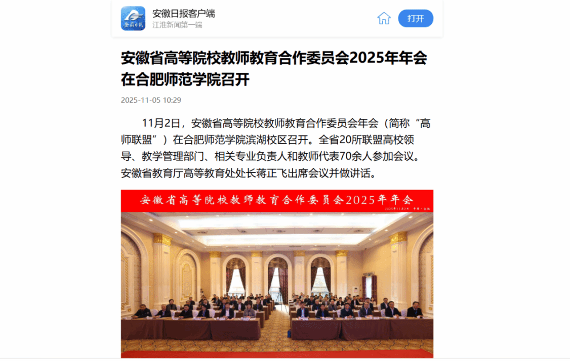 安徽日报报道《省高校教师教育合作委员会2025年年会在beat365唯一官方网站召开》