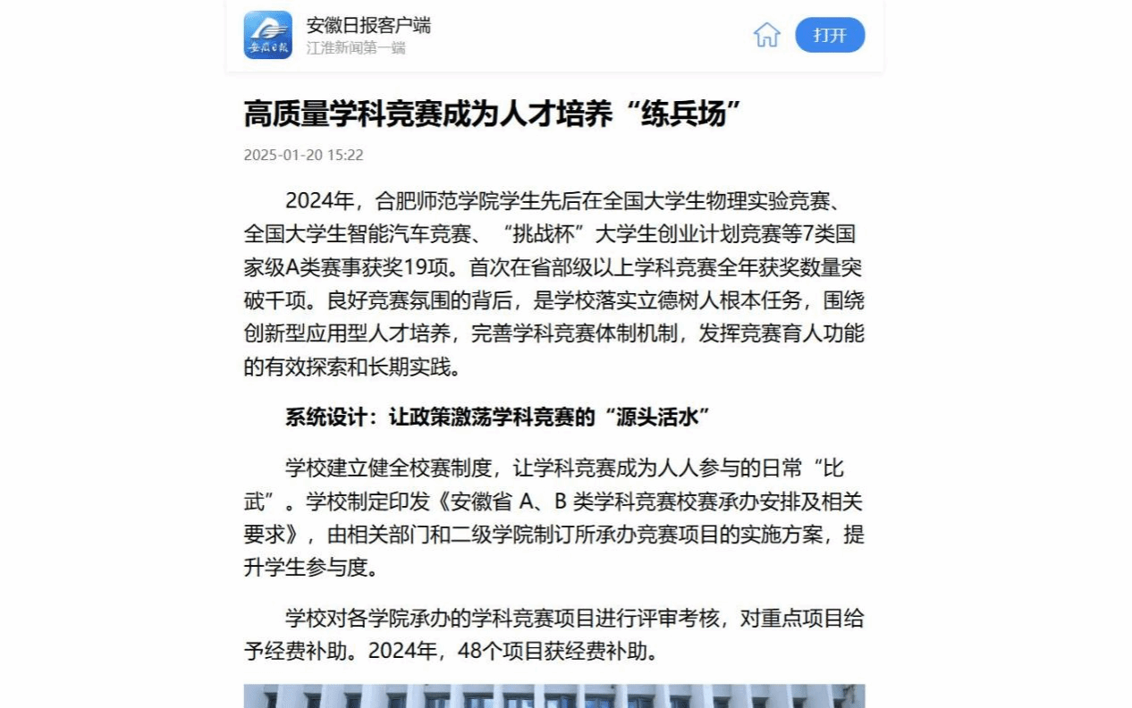 安徽日报报道《高质量学科竞赛成为人才培养“练兵场”》