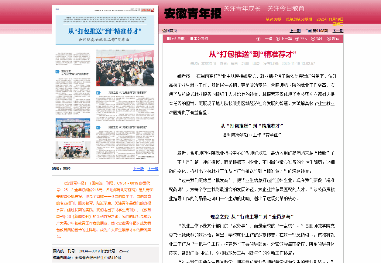 《安徽青年报》整版报道beat365就业工作经验做法