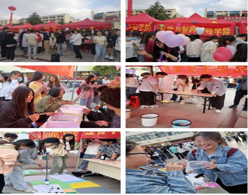本次活动在锦绣校区和滨湖校区同时开展,现场人流如织,气氛热烈,2000余名学生参与其中,一站式体验多姿多彩的心理健康活动。活动以“乘风破浪﹒蓄力绽放”为主题,设置了22个项目,包括艺术表达类活动,如文学院“每人一笔”、“记忆考验”活动,美术与设计学院“泥塑剪纸创作”;沟通交流类活动,如音乐学院“心声漂流盒”,物理与材料工程学院“心意相通”、“喜怒哀乐我来猜”活动,封印动漫社“解忧信箱”活动;体验感悟类活动,如外国语学院“心灵漂流瓶”,计算机与人工智能学院“本我所在,自我所依”、“我爱我(525)的100种理由”活动,化学与制药工程学院“‘胶’筑梦想”活动、马克思主义学院“扔掉烦恼,快乐前行”活动;素质拓展类活动,如经济与管理学院“气球大作战”、“错误乘法表”活动,教育与心理科学学院“气球传杯”、“同舟共济”活动,电子信息与集成电路学院“团队来挑战”活动,生物与食品工程学院“同心协力,书写芳华”活动;益智挑战类活动,如数学与统计学院“趣味画画画”、“益智碰碰乐”活动,体育科学学院“巧手夹珠,‘筷’乐人生”活动、心理健康教育中心“我的答案你知道”活动。