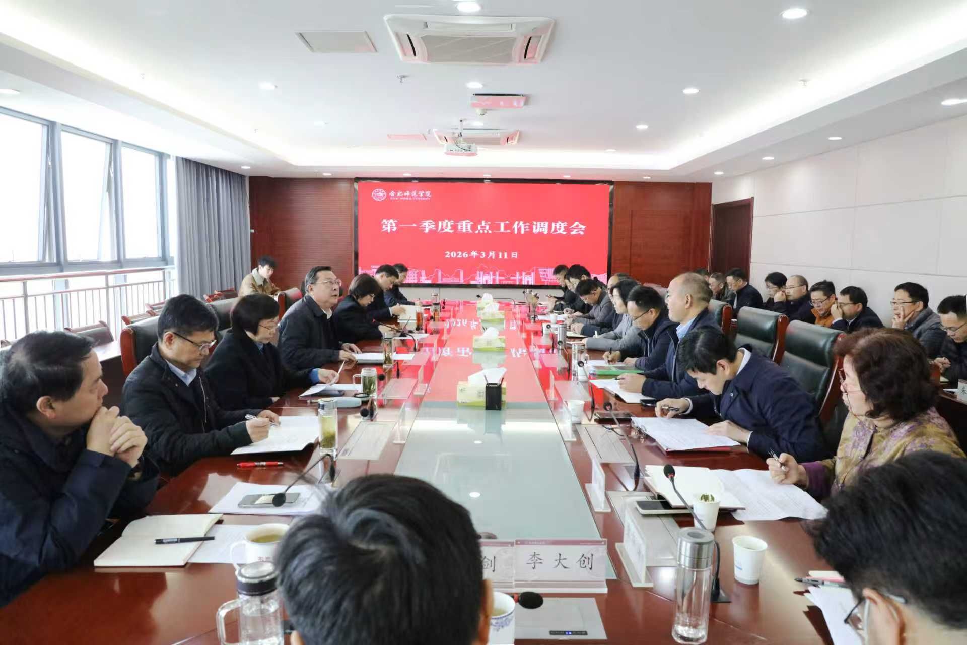 3月11日上午,学校在行知楼2008会议室召开2026年第一季度重点工作调度会。校党政班子成员,各部门主要负责人,各二级学院党委书记、院长参会。党委书记徐成钢主持会议并讲话,党委副书记、校长方东玲部署近期重点工作。