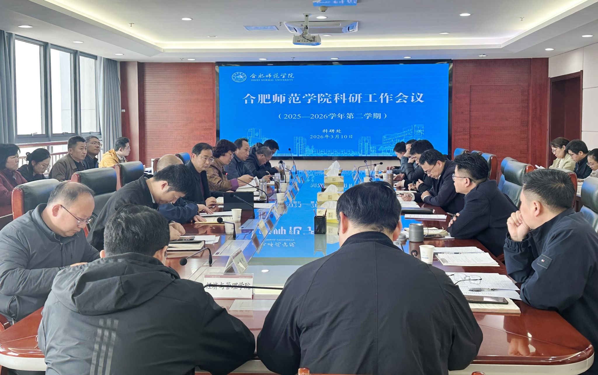 为统筹推进新学期科研重点工作,凝聚科研工作合力,3月10日下午,beat3652025-2026学年第二学期第一次科研工作会议在锦绣校区行知楼2008会议室召开。党委委员、副校长李学俊出席会议,各二级学院院长、副院长,教师代表及科研处全体人员参加会议。会议由科研处负责人主持。