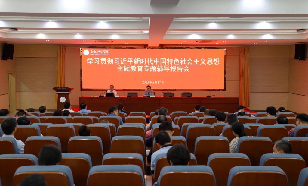 5月17日下午,学院党委学习贯彻习近平新时代中国特色社会主义思想主题教育读书班专家辅导报告会在锦绣校区学术报告厅举行。省委党校(安徽行政学院)马克思主义学院院长、教授、博士生导师汪兴福作辅导报告。党委副书记梁立昌主持报告会。党委委员、纪委书记、监察专员徐文林,党委委员、组织部部长赵帮恚,党委委员、宣传部部长、统战部部长常树宝出席,全体处以上干部、全体辅导员参加会议。