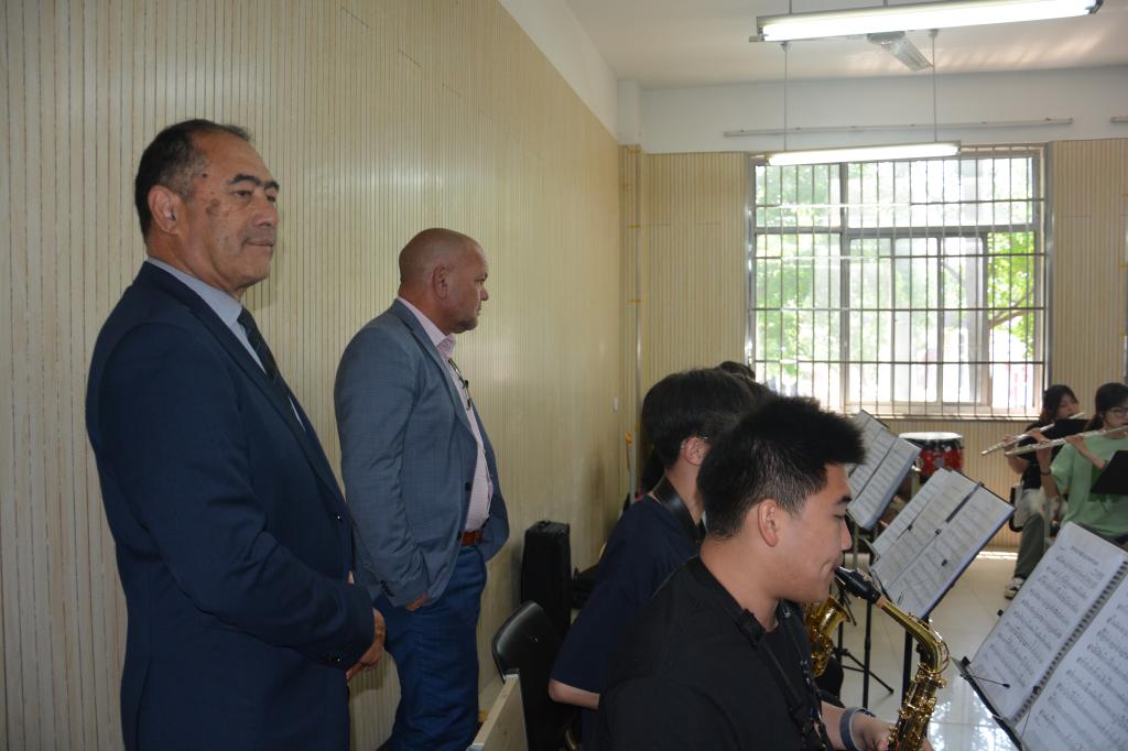 随后,代表团一行到艺术楼观摩艺术课教学。代表团在音乐厅欣赏了学生的民乐合奏排练《花好月圆》,了解了二胡、琵琶和笛子等中国传统乐器,观摩了西方管乐、弦乐课堂教学,交流了课堂教学感受,并给予充分肯定。