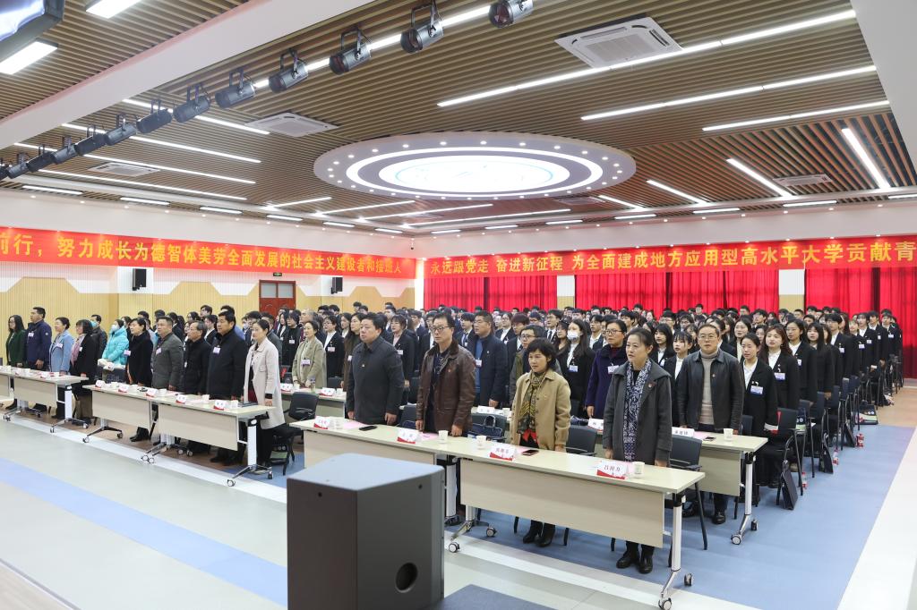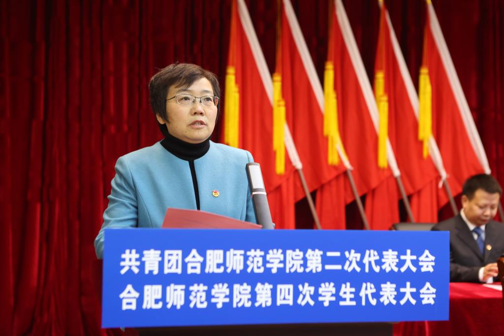 徐成钢代表学院党委向大会的召开表示热烈祝贺,向全院团员青年和广大同学致以亲切问候,充分肯定了各级团学组织在服务学院地方应用型高水平大学建设中取得的显著成绩,并向广大青年学生提出三点希望:一要树立远大理想,坚定不移听党话、跟党走。要坚持用习近平新时代中国特色社会主义思想培根铸魂,持续深入学习贯彻党的二十大精神,把远大理想转化为大学成长目标和将来职业规划,脚踏实地过好每一天、锲而不舍走好每一步,不负青春、不负韶华、不负时代。二要锤炼过硬本领,知行合一勤学习、勇实践。要努力学好科学理论,拓展专业技能,提升综合素质,锤炼过硬本领。要积极参与行知学堂、志愿服务、社会实践,努力经锻炼、长才干、做贡献,让勤奋学习成为青春远航的不竭动力,让增长本领成为青春搏击的强大能量。三要担当时代重任,勇立潮头挑重担、克难关。要增强“请党放心、强国有我”的责任感和使命感,传承和弘扬伟大建党精神和“自强不息,追求卓越”的合师精神,不断增强做中国人的志气、骨气、底气。要积极关心和支持学院改革发展,积极投身社会服务实践,以昂扬向上的精神风貌不断开辟成长发展新天地,勇做新时代新征程的奋进者、开拓者、奉献者。