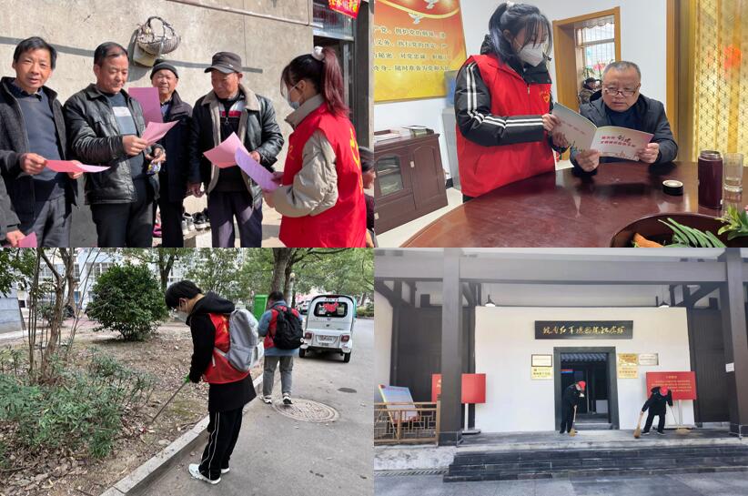 外国语学院栗子雅同学回到家乡山西省临汾经济开发区滨河街道下樊社区参与社区创城实践活动,开展反诈骗知识科普、环境治理与文明宣传实践活动。文学院邵青青同学来到明光街道韩山社区新时代文明实践站,参加“同心颂党恩,共祈幸福年”文艺汇演,开展移风易俗、倡导文明用餐等实践活动。文学院何雨凡同学返回家乡池州市石台县七都镇新棚村,打扫皖南红军总医院旧址,走访当地村民,了解红色故事。文学院张警予同学赴安徽省淮北市疾病预防控制中心,了解学习疾病预防知识和卫生健康条例,面向群众开展健康卫生知识科普咨询。数学与统计学院吕德雅同学回到家乡马鞍山市含山县环峰镇朝阳行政村,向村民宣传普及疫情防控新政策、反诈骗知识,走访看望孤寡老人,参与环境卫生整治公益活动。