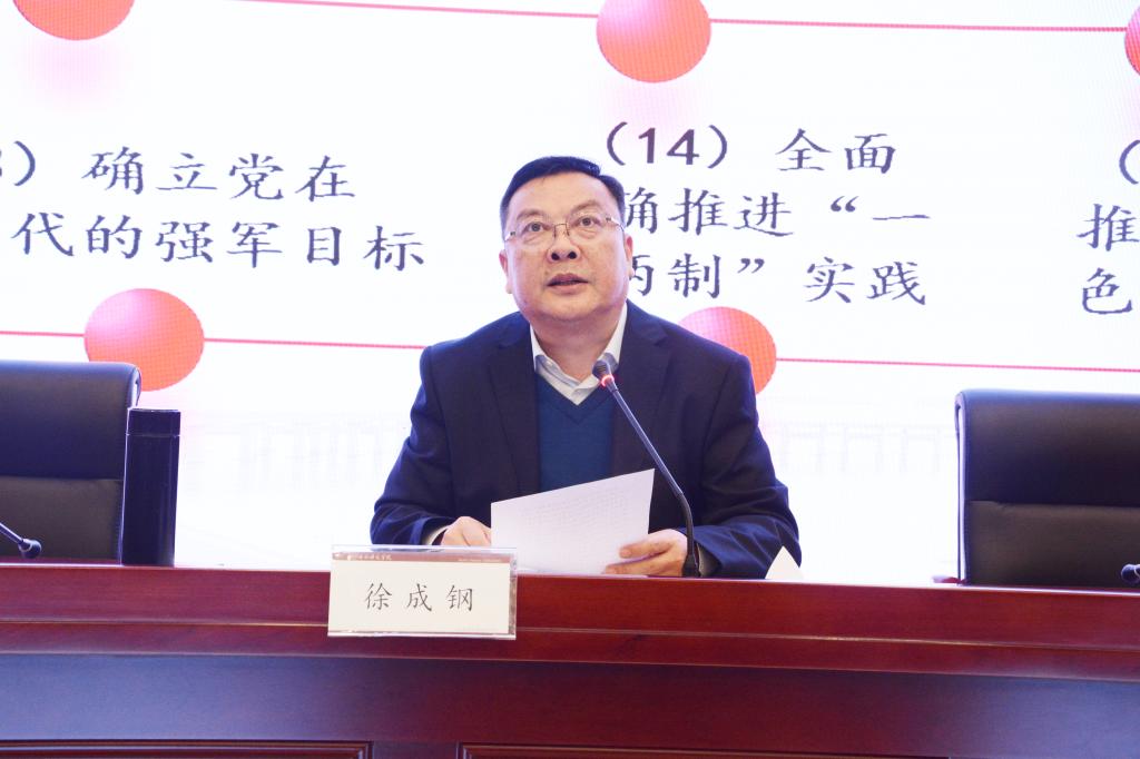 徐成钢重点就党的二十大关于教育工作、青年工作和加强党的建设的有关论述作了认真解读。他指出,党的二十大报告将教育从以往的社会建设与民生领域单列出来,与科技、人才进行“三位一体”统筹部署,并放在论述“高质量发展是全面建设社会主义现代化国家的首要任务”之后的突出位置,更加突显教育优先发展的战略定位,充分体现了党和国家对教育的高度重视。在分析学校发展面临的新形势新机遇新挑战的基础上,他指出,全校上下要坚持以习近平新时代中国特色社会主义思想为指导,全面学习全面把握全面落实党的二十大精神,弘扬伟大建党精神和“自强不息追求卓越”的合师精神,重点在坚定社会主义办学方向不动摇、落实立德树人根本任务育新人、坚持践行党的群众路线聚合力、推动学校办学事业发展开新局等四个方面聚焦用力,只争朝夕建设特色鲜明的地方应用型高水平大学。