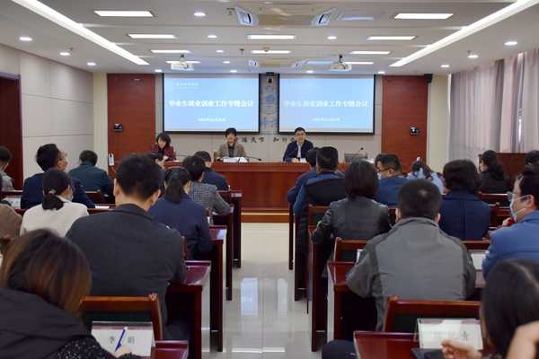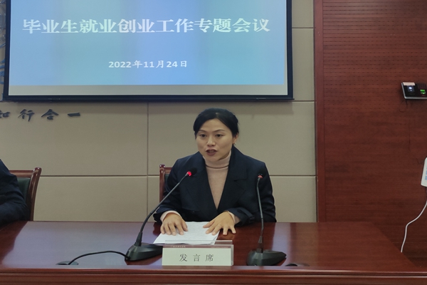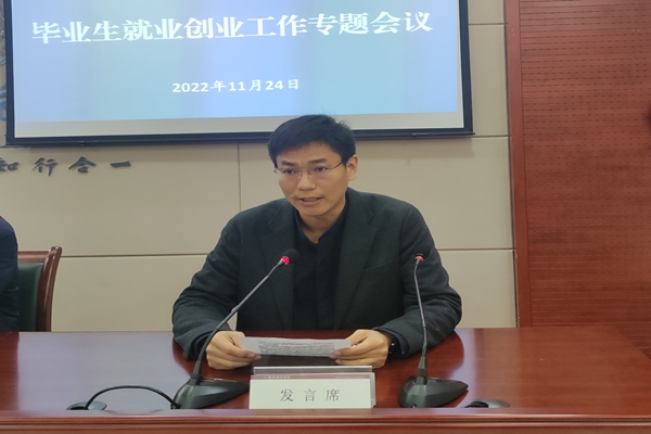 本网讯 11月24日,学院在锦绣校区行知楼第三会议室召开毕业生就业创业工作专题会议,深入学习党的二十大精神,认真贯彻2023届全国和全省普通高校毕业生就业创业工作网络视频会议精神,总结成绩,分析形势,全面启动、重点部署做好2023届毕业生就业创业工作。党委副书记、院长方东玲出席会议并讲话。党委委员、副院长周端明出席并主持会议。联合培养学校有关负责人,学院相关职能部门负责人,各二级学院党委(党总支)书记、副书记,全体2022届、2023届毕业班辅导员参加会议。