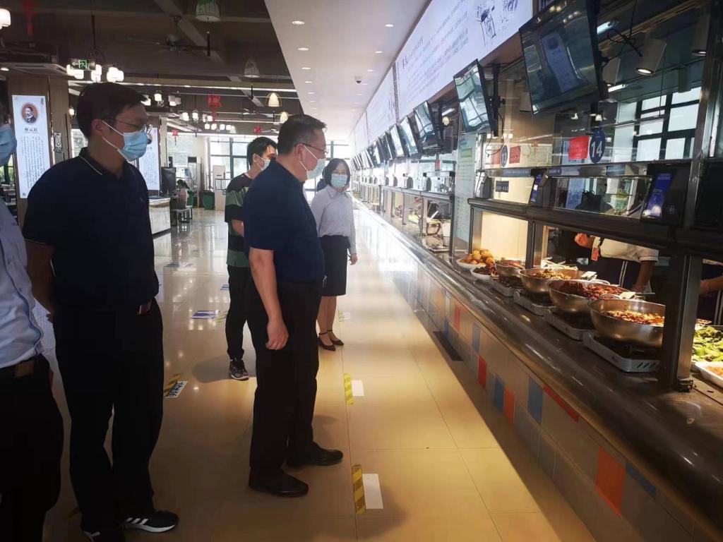 徐成钢一行先后实地查看了锦绣校区的门卫岗亭、校医院、总值班室、图书馆、食堂等场所,与值班值守教职员工亲切交谈,详细了解国庆假期疫情防控、安全保卫、后勤保障、学生生活与学习、校园环境与卫生等情况,对他们的辛勤工作表示充分肯定,嘱咐大家劳逸结合、保重身体,并向他们致以节日的问候和祝福。