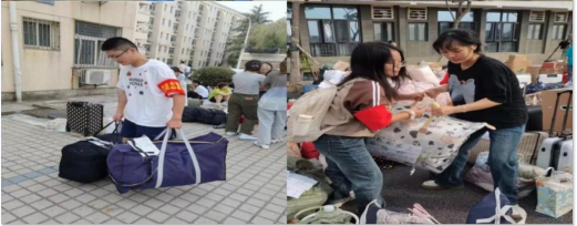 勇于担当保落实。各学院强化责任落实和压力传导,细化工作事项,在搬迁宣传、信息摸排、思想教育、物品存放、人员保障等方面做足充分准备,组织辅导员开展线上线下主题班会,围绕“何时搬、搬到哪、怎么搬”等搬迁事宜和疫情防控、安全教育等相关注意事项,及时向学生传达搬迁工作具体要求。对因疫情不能参与搬迁返校的学生,外国语学院辅导员了解情况后立即安排班干部与学生一对一进行联系,并协调安排室友和班委共同帮助搬运行李,切实解决学生的后顾之忧。