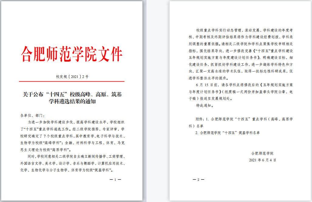 和谐校园持续稳定。严格落实包保责任制,强化隐患排查化解,校园安全保持平稳态势。加强大学生事务中心和省级心理健康教育示范中心建设。建立师生申诉制度,关心离退休人员。加强节约型校园建设,入选第一批“安徽省绿色学校”。推进精神文明创建,学校荣获首届安徽省文明校园和第三届合肥市文明校园,成功备案全国文明校园先进学校。积极筹措资金,建立绩效津贴逐年增长机制,及时发放一次性奖励,调增、缴存住房公积金,落实教职工年度体检,教职工幸福感获得感明显提升。(发展规划处)