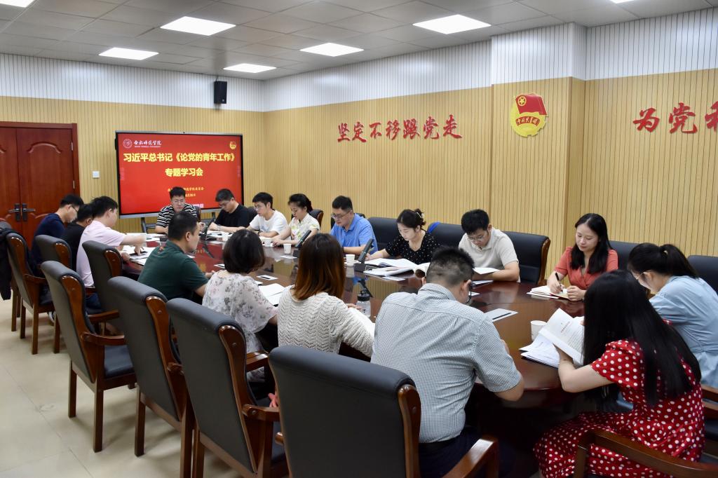 本网讯 8月25日上午,学院共青团理论学习小组在锦绣校区共青之家会议室专题学习习近平总书记《论党的青年工作》。学院共青团理论学习小组全体成员参加会议,会议由院团委副书记刁文彬主持。