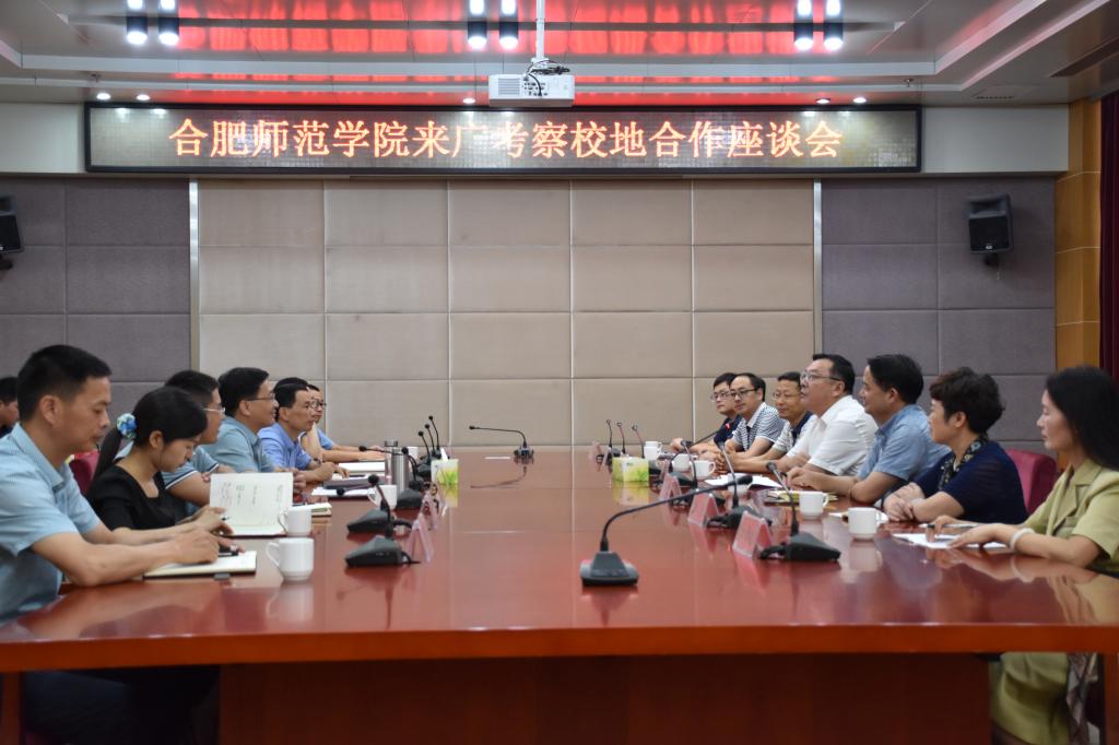 本网讯 8月1日,院党委书记徐成钢在相关部门负责人陪同下,来到广德市洽谈校地合作事宜。广德市委副书记、市长钱会,广德市委常委、组织部长储德清,广德市人社局、团委等单位负责人热情接待了徐成钢一行。