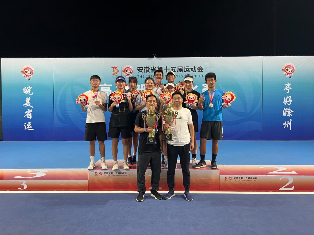 本网讯 7月18日-27日,由安徽省人民政府主办,省教育厅、省体育局、滁州市政府承办的安徽省第十五届运动会高校部网球比赛在天长中学举行。共有来自全省47所高校496名运动员参加3个组别(甲组、乙组、丙组)的男团、女团、男单、女单、男双、女双、混双共21个项目比赛。我院首次组队参加省运会高校部网球比赛,获得了丙组男女团亚军、男单亚军、女单季军、混双季军,女双第五名,甲组男单亚军,共斩获4银2铜,创造历史最好成绩。