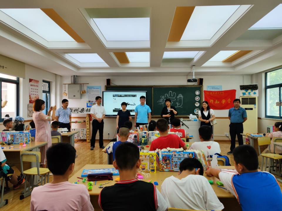 方东玲一行人首先参观了学校的锦实劳动基地,并和锦实劳动基地的小学生们亲切交流,询问假期劳动情况;随后来到了二楼的图书阅览室,这里正在进行的是beat365唯一官方网站开展的“行知学堂”,小先生们正在教授以“徽风皖韵”为主题的手工课。方东玲饶有兴致地观摩了课程教学,并将带来的精美文具送给可爱的孩子们。方东玲详细地询问了团队组成、课程安排和活动开展情况,鼓励小先生们结合自己的专业特色为孩子们带去形式多样、内容丰富的教育,为孩子们传授有用的知识,让孩子们健康快乐阳光成长,同时叮嘱小先生们要牢记习近平总书记的嘱托,严守教师道德,塑造爱生情怀,并通过实践不断检验、提升自己的专业能力,让自己在服务社会中尽快成长,办好学校和家长满意的行知学堂。