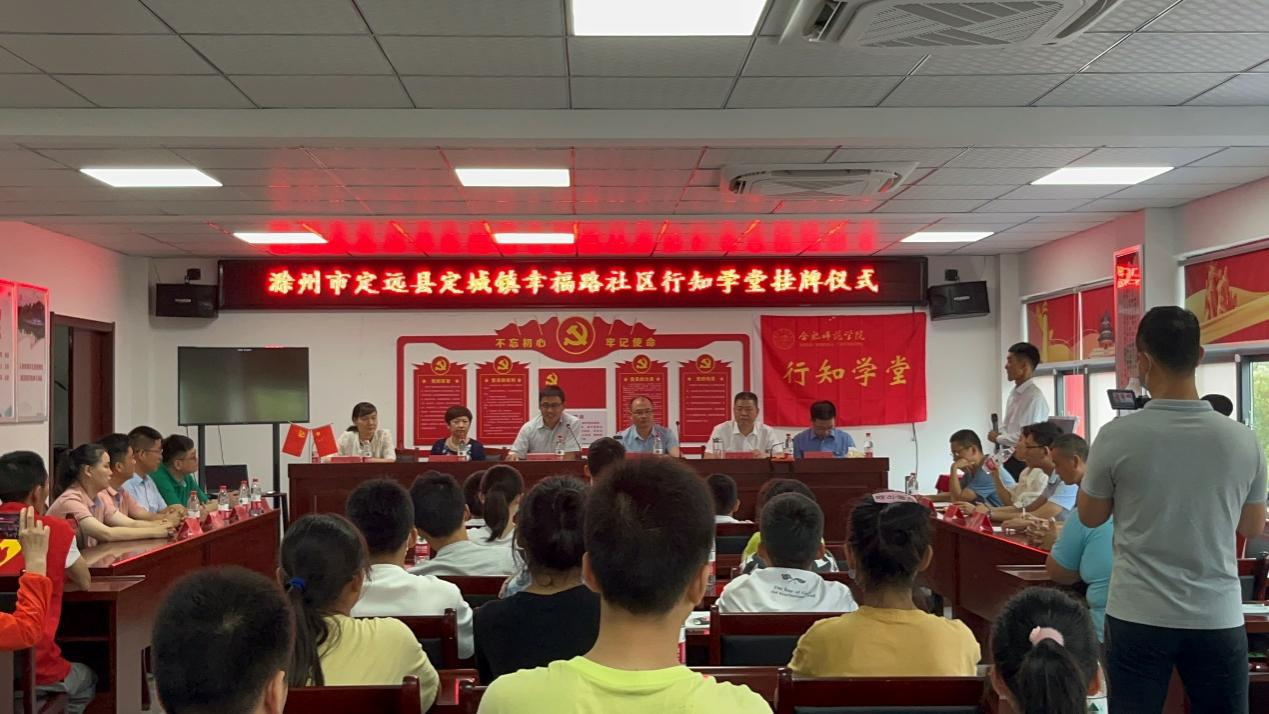 仪式上,葛鹏代表定远县委、县政府对周端明一行表示热烈欢迎,他对定远县教育事业的发展等进行了简要介绍,对我院来到定远县开办行知学堂表示感谢。他希望“行知学堂”能够立足定远教育事业发展实际,集思广益,取长补短,为定远县教育事业振兴注入强心剂。同时定远县也将本着对小先生们负责的态度,真心关怀、细心服务,解决他们的实际困难,确保活动取得预期成效。戈国民代表定城镇感谢我院对定城镇教育事业的支持,期望在外求学的定远学子为家乡教育事业贡献青春力量,定城镇将为学子们的全面发展提供实践平台。未来,将营造更好的育人环境,吸引更多的人才来兴教展才。