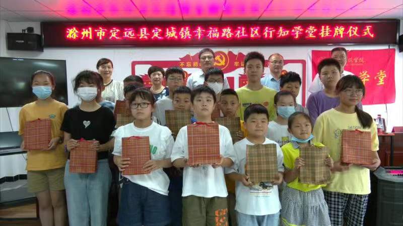 本网讯 7月8日,党委委员、副院长周端明在学生工作部、校团委、数学与统计学院单位负责人及辅导员陪同下,到滁州市定远县定城镇看望慰问行知学堂的小先生和留守儿童,参加行知学堂挂牌仪式。定远县委常委、组织部部长葛鹏,定城镇党委书记戈国民,定远县团县委、定城镇党委、幸福路社区、义工协会等负责人热情接待了周端明一行,同小先生和小学员们共同参加了挂牌仪式。