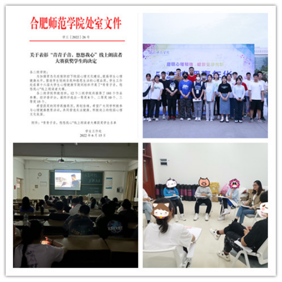 学院组织开展了线上朗读者比赛、心理嘉年华活动、心理电影赏析及观后感有奖征集活动、团体心理辅导活动等内容丰富、形式多样心理健康教育活动,将心理育人与实践育人相结合,提升心理育人长效性。