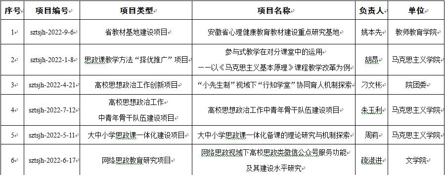 beat365唯一官方网站获批2022年安徽省“三全育人”试点省建设暨高校思想政治能力提升计划项目名单