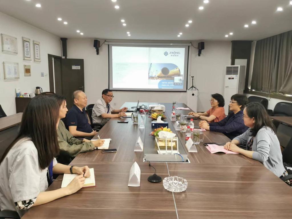 邱凌对方东玲一行表示热烈欢迎。他详细介绍了公司近二十年的发展历程。他表示,紫金钢管自创立之初就有着校企合作的“基因”,一直高度重视校企合作,期待以此次交流为契机,推动校企双方在科技攻关、成果转化、产学研合作、人才培养、实习就业等方面进一步深化合作,不断取得新的成果。贾庆浩详细介绍了相关业务的开展情况。