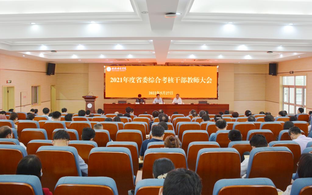 27日上午,学院在锦绣校区学术报告厅召开学院领导班子和领导人员2021年度综合考核干部教师大会。考核组组长、省政协教科卫体委员会主任庆承松一行6人出席会议。学院领导班子成员、机关部门领导成员、二级学院党政正职(含主持工作副职)和省级“两代表一委员”、民主党派市级以上主委,院教代会执委、正高职称人员、学生代表等参加大会。大会由党委书记徐成钢主持。