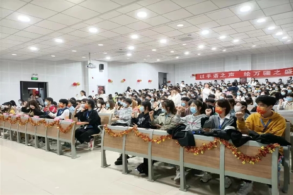 4月1日,第二十二届爱心手语决赛顺利举行。经过初赛,由同学们自行组队、选曲,拍摄手语视频并进行现场展示。选手们拿出了最好的状态,伴随着悠扬的乐曲声,选手们面带温暖舞动指尖,动作整齐划一,赢得了评委和现场观众的阵阵掌声。
