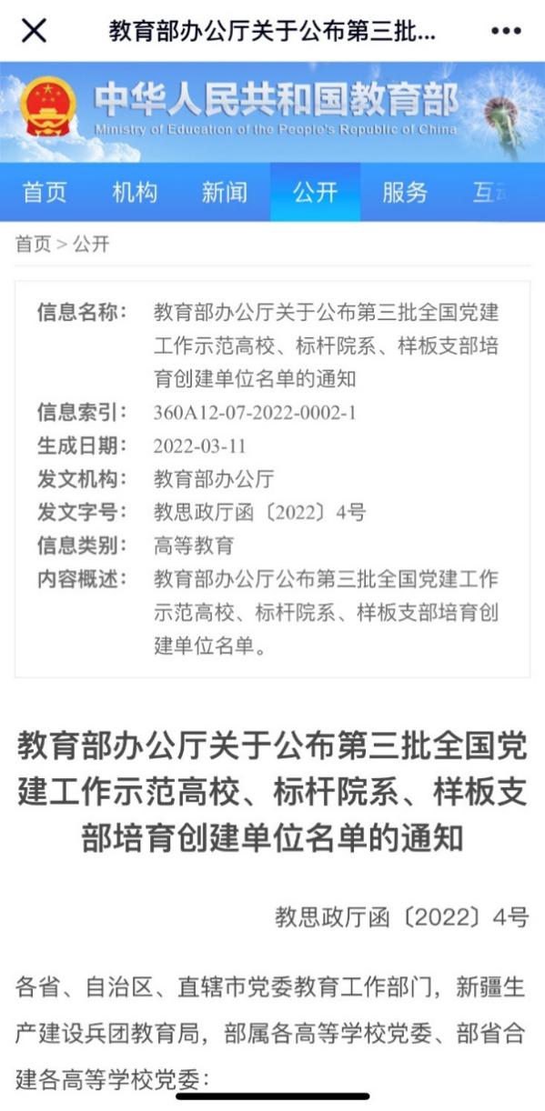 本网讯 近日,教育部办公厅发布了《关于公布第三批全国党建工作示范高校、标杆院系、样板支部培育创建单位名单的通知》,全国共遴选产生了11个全国党建工作示范高校、100个全国党建工作标杆院系、1000个全国党建工作样板支部培育创建单位,我院教师教育学院教育系教工党支部入选“全国党建工作样板支部”培育创建单位,获得党建工作新突破。