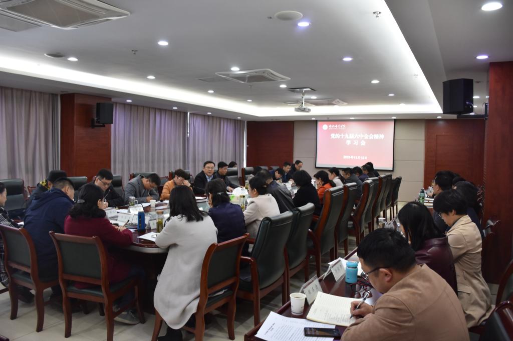徐成钢传达学习了《中国共产党第十九届中央委员会第六次全体会议公报》的主要内容,他表示,全会是一场具有全局性、历史性意义的重要会议,全面总结了党的百年奋斗重大成就和历史经验,对推动全党进一步统一思想、统一意志、统一行动,团结带领全国各族人民夺取新时代中国特色社会主义新的伟大胜利,具有重大现实意义和深远历史意义。徐成钢强调,学校各级党组织和广大师生要深入学习贯彻党的十九届六中全会精神,更加紧密地团结在以习近平同志为核心的党中央周围,全面贯彻习近平新时代中国特色社会主义思想,大力弘扬伟大建党精神,坚定理想信念,牢记初心使命,埋头苦干、勇毅前行,为实现第二个百年奋斗目标、实现中华民族伟大复兴的中国梦而不懈奋斗。