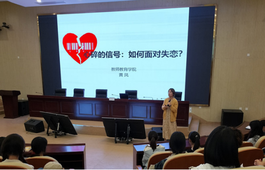 10月11日,黄凤老师在滨湖校区开展题为“心碎的信号:如何面对失恋?”的讲座。讲座伊始,黄凤就“你失过恋吗?”、“你怎么形容失恋?”、“你如何应对失恋?”等与失恋相关的问题与学生进行互动,并结合具体案例,讲解了个体失恋后的反应,提出了应对建议,帮助同学正确面对失恋并在失恋中得到成长。讲座结束后,针对同学提出的疑问,黄凤一一给予了解答。