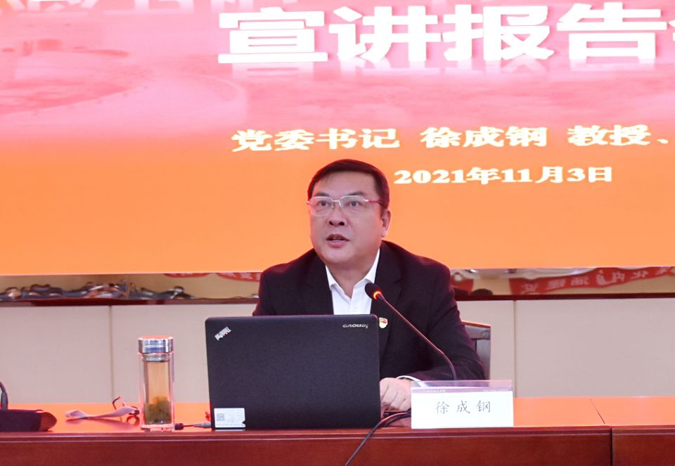 党委书记徐成钢在锦绣校区学术报告厅为艺术传媒学院师生代表、相关部门负责人、所在支部成员作“勤奋学习 立志成才 做新时代先锋力量——学习贯彻习近平总书记“七一”重要讲话精神宣讲报告”。报告紧紧围绕习近平总书记在庆祝中国共产党成立100周年大会上的重要讲话精神,从 “为何学、学什么、怎么学”等三个方面展开,通过一个个经典故事和党史案例,深刻阐释了习近平总书记“七一”重要讲话的重大意义、主要内容和丰富内涵、重要任务等,并结合刚刚结束的省第十一次党代会精神,给大家上了一堂针对性强、内容丰富的精彩党课。