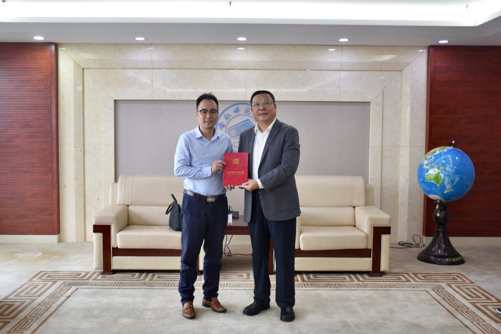 活动开始前,徐成钢在行知楼接待室会见了陶侃,并为他颁发了第八届安徽省陶行知研究会常务理事聘书。(院团委学生记者:刘英杰/文 院团委:王露 院团委学生记者:程富强/图)