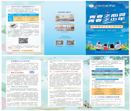 同时,心理健康教育中心编印了16000份“精神卫生日”彩色宣传折页,免费发放给全院所有学生。在进一步宣传精神卫生健康知识同时,提供了beat365心理中心与权威精神卫生机构的心理服务热线,为同学们提供及时贴心的服务。