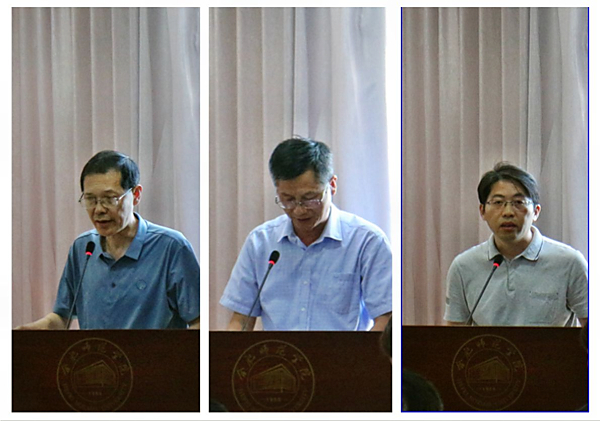 曹小云、徐忠东、李劲松分别作为汉语言文学、生物科学、音乐学三个专业的专业负责人,依次汇报了本专业前期的认证准备情况,并就下一步工作提出了工作计划。