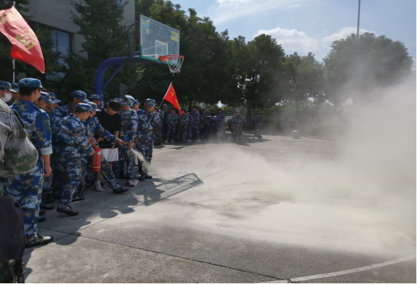 演练后,新生以连为单位,观看了教官使用灭火器的讲解和演示,部分同学还踊跃报名,用灭火器扑灭现场“火灾隐患”。