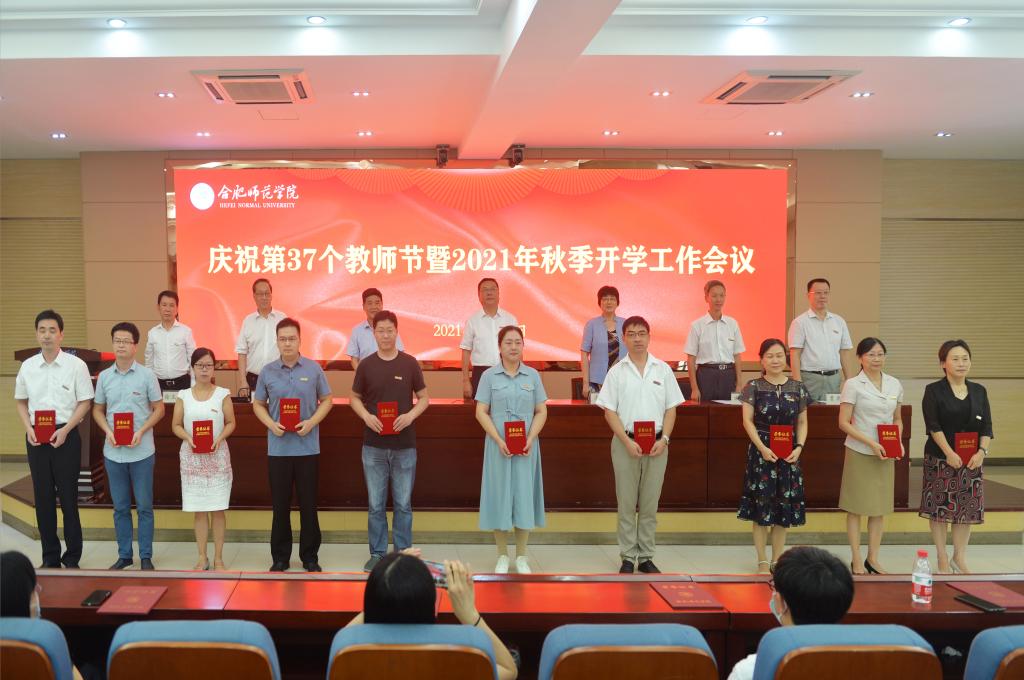会上,吴昕春为教龄满30周年(女满25周年)教师颁发纪念证书;姚本先宣读学校关于表彰“全省教科文卫体系统职业道德先进个人”、2021年“师德先进个人”获奖者的决定,全体院领导为受到表彰的先进个人颁奖。