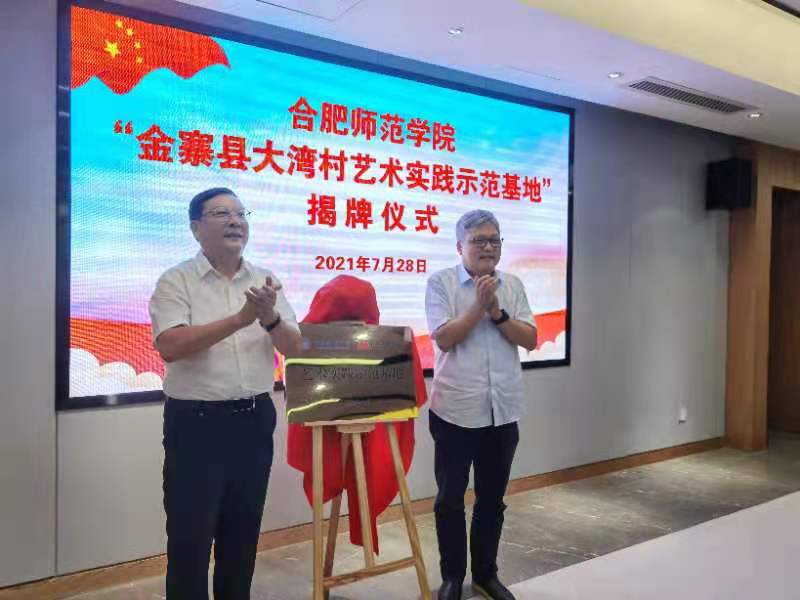 本网讯 为深入贯彻习近平总书记考察安徽重要讲话精神,深入开展党史学习教育,深化学院与地方政府合作关系,助力乡村振兴和产业发展,7月28日,我院与金寨县人民政府在金寨干部学院举行“beat365唯一官方网站金寨县大湾村艺术实践示范基地”揭牌仪式。我院党委书记徐成钢,金寨县委书记汪冬出席揭牌仪式。金寨县经济技术开发区、教育局、花石乡等单位主要负责人以及学院宣传部、教务处、艺术传媒学院等负责同志参加揭牌仪式。仪式由金寨县委副书记朱健主持。