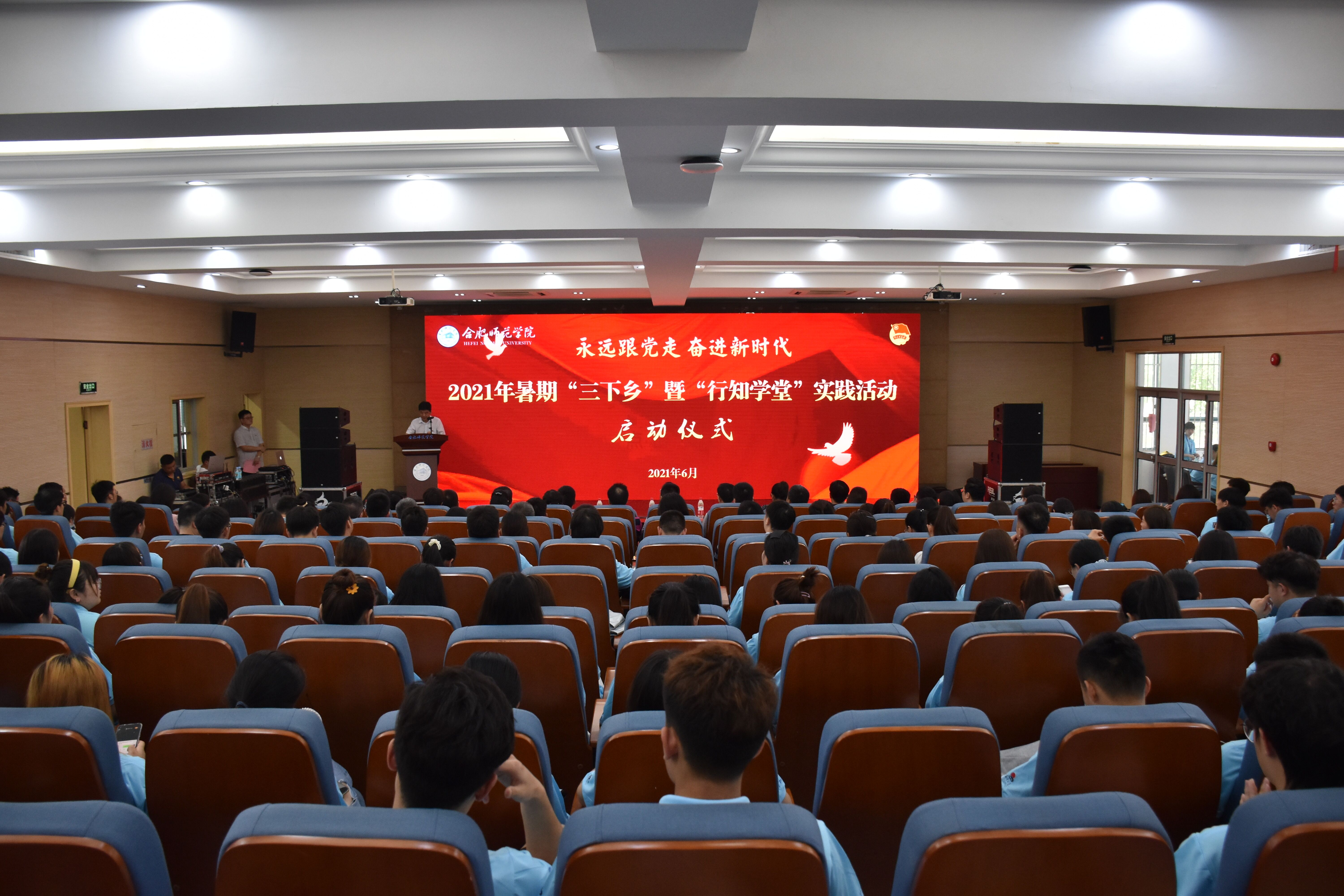 本网讯 6月29日下午,学院在锦绣校区学术报告厅举行2021年暑期“三下乡”暨“行知学堂”实践活动启动仪式。院党委书记徐成钢、院党委副书记吴昕春,省委宣传部思想政治工作处副处长夏捍东、团省委学校部副部长杜盛、省文明办志愿服务工作处四级调研员齐乐,组织部、办公室、宣传部、学生工作部、保卫处、马克思主义学院、院团委等单位负责人,各二级学院党委(党总支)书记、分团委书记、辅导员,行知学堂“小先生”代表近300余人参加了启动仪式。启动仪式由院团委副书记刁文彬主持。