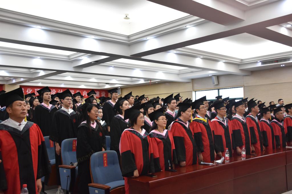 在庄严的国歌声中,毕业典礼正式拉开帷幕。