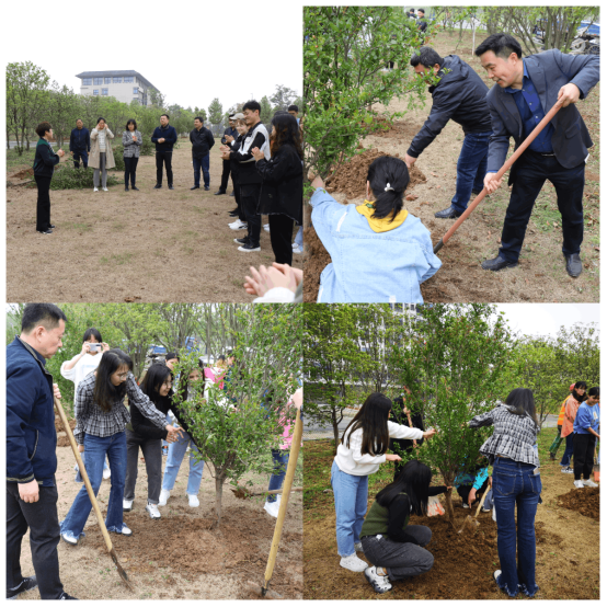 在滨湖校区5号学生公寓前,在场师生共同培土、植树、施肥、浇水,并详细了解了石榴树的生长习性等情况。本次活动在后勤处、滨湖办的大力支持下共种植20株石榴树。