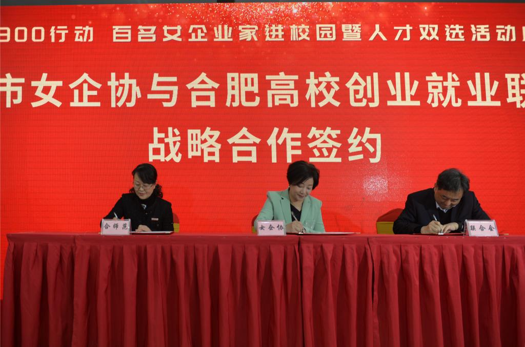 据悉,由合肥市女企业家协会发起的百位女企业家进校园活动,将优选100名优秀女企业家进高校、对接100个优秀企业和机构、服务100个创新技术成果转化,今后双方将在合作框架协议的基础上,邀请女企业家走进校园,走上讲台,实现专业和产业、课堂和车间的无缝衔接,搭建创就业服务平台,开展双创领域的深度合作,推动项目及人才培养的提质增效,为地方经济社会发展提供服务和支撑。(就业创业工作处:何晶晶)