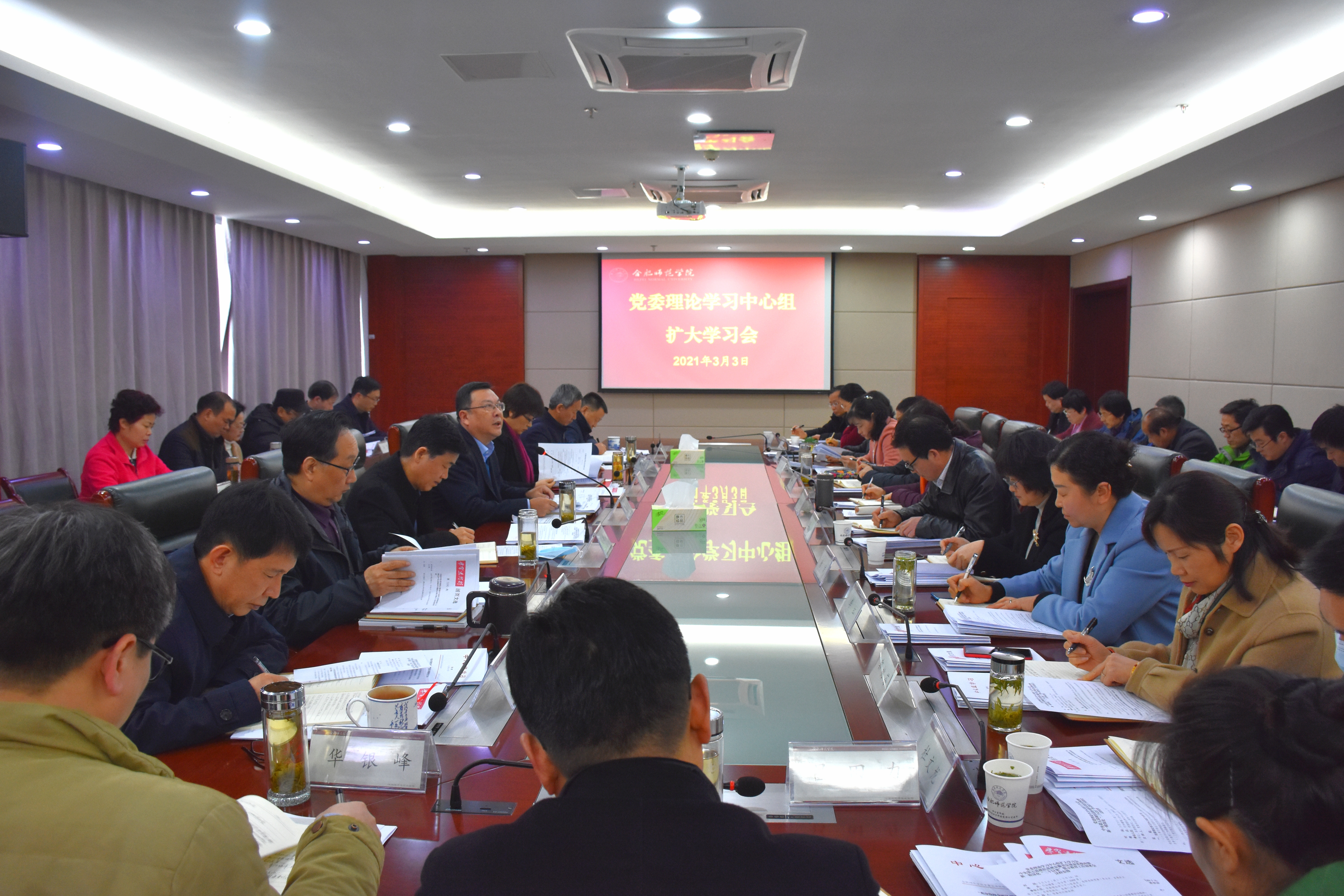本网讯 3月3日,学院举行党委理论学习中心组扩大学习会,动员部署党史学习教育。党委书记徐成钢主持会议并讲话。党委理论学习中心组成员出席会议,各院系级党委(党总支)、直属党支部书记,各学院院长、各部门主要负责人参加会议。