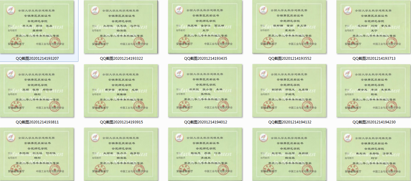 全国大学生数学建模竞赛是由教育部高等教育司、中国工业与应用数学学会共同主办的面向全国大学生的课外科技训练活动,是全国高校学科竞赛排行榜列入赛事,安徽省A类大学生学科竞赛,赛事创办于1992年,每年一届,目前已成为全国高校规模最大的基础性学科竞赛,也是世界上规模最大的数学建模竞赛。大赛的目的在于激励学生学习数学的积极性,提高学生建立数学模型和运用计算机技术解决实际问题的综合能力,鼓励广大学生踊跃参加课外科技活动、开拓知识面、培养创造精神及合作意识,推动大学数学教学体系、教学内容和方法的改革。2020年全国大学生数学建模竞赛共有来自全国及美国、英国、马来西亚的1470所院校、45680个队、超过13万名大学生报名参赛。全国一等奖获奖比例为0.7%、二等奖为2.87%。