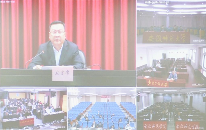 本网讯 11月18日下午,省委教育工委在肥召开全省高校思政队伍配备工作推进视频会议,省委教育工委书记钱桂仑出席会议并讲话,视频会议由省委教育工委副书记庆承松主持。我院党委书记徐成钢在主会场参加会议并代表学院作交流发言,重点就我院思政队伍建设工作进行了介绍。党委副书记、副院长李进华,兄弟高校代表以及相关部门负责人在我院分会场参加了视频会议。