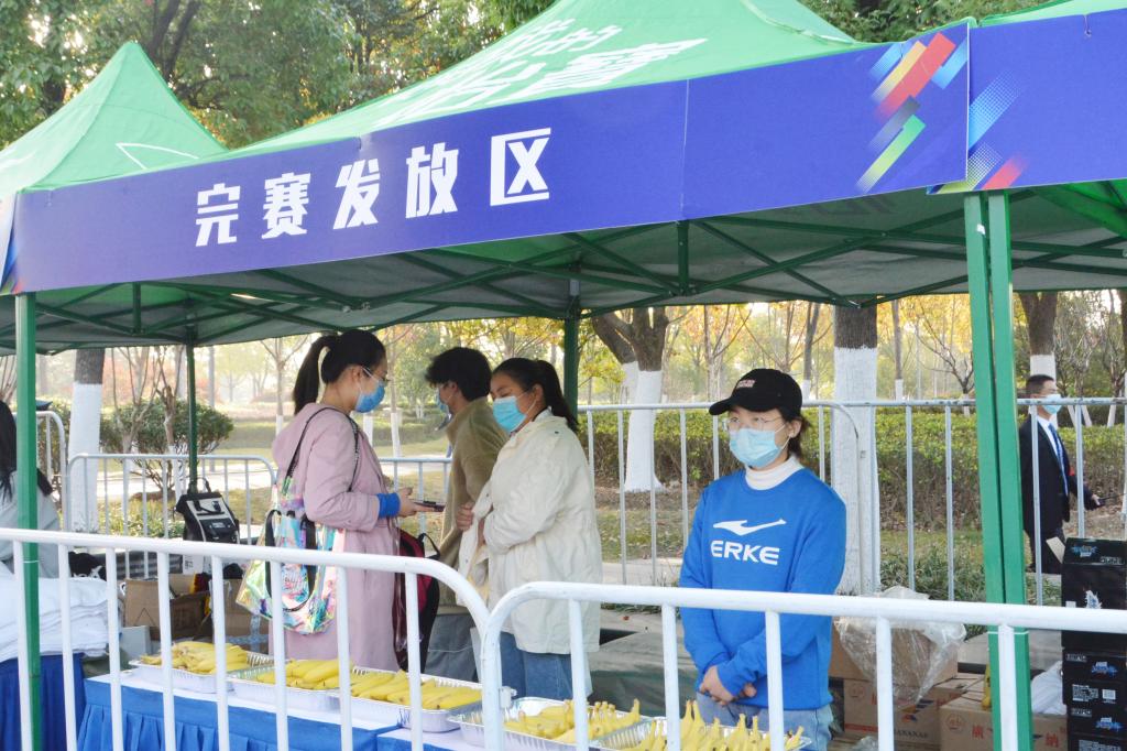 “我们手持的体温枪是保障赛场安全的重要工具,我丝毫不敢马虎。”化学与化学工程学院2020级化学(师范)专业孙英杰同学整齐佩戴口罩,手持体温枪为每一名检录比赛者提供体温测量服务。“我的工作内容是赛事包分拣发放,就是选手陆续到场后,需让选手们有序排队,依次领取本人赛服,领到服装后,我们会指引选手前往检录处进行检录,为比赛做准备。”赛事包发放处的接待区域内,生命科学学院生物技术2020级应玉俊同学正麻利的整理着依据不同参赛者身份分拣的赛事包。 “以前就想参加马拉松的,但是怕自己跑不下去。今天看到许多老爷爷老奶奶和小朋友也参与了,这对我是很大的鼓舞,觉得以后有机会可以尝试一下。”在比赛开始前,化学与化学工程学院2019级化学(师范)专业米热古丽·巴日同学与情绪紧张的参赛者聊了起来,提供心理建设服务的同时,自己也受到了启发。