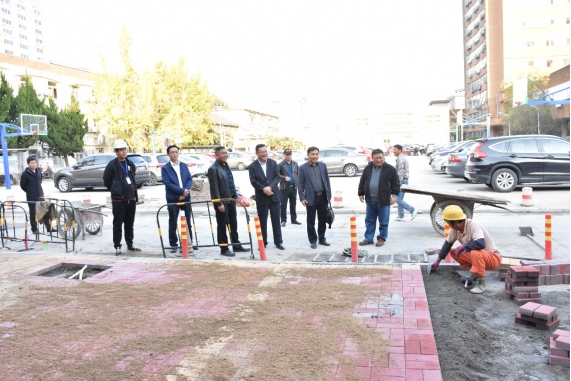 院领导一行实地查看了道路修整、屋面防水、雨污分流、供水管网改造等施工现场,详细了解施工进度和施工质量,听取施工单位项目施工进展情况汇报。