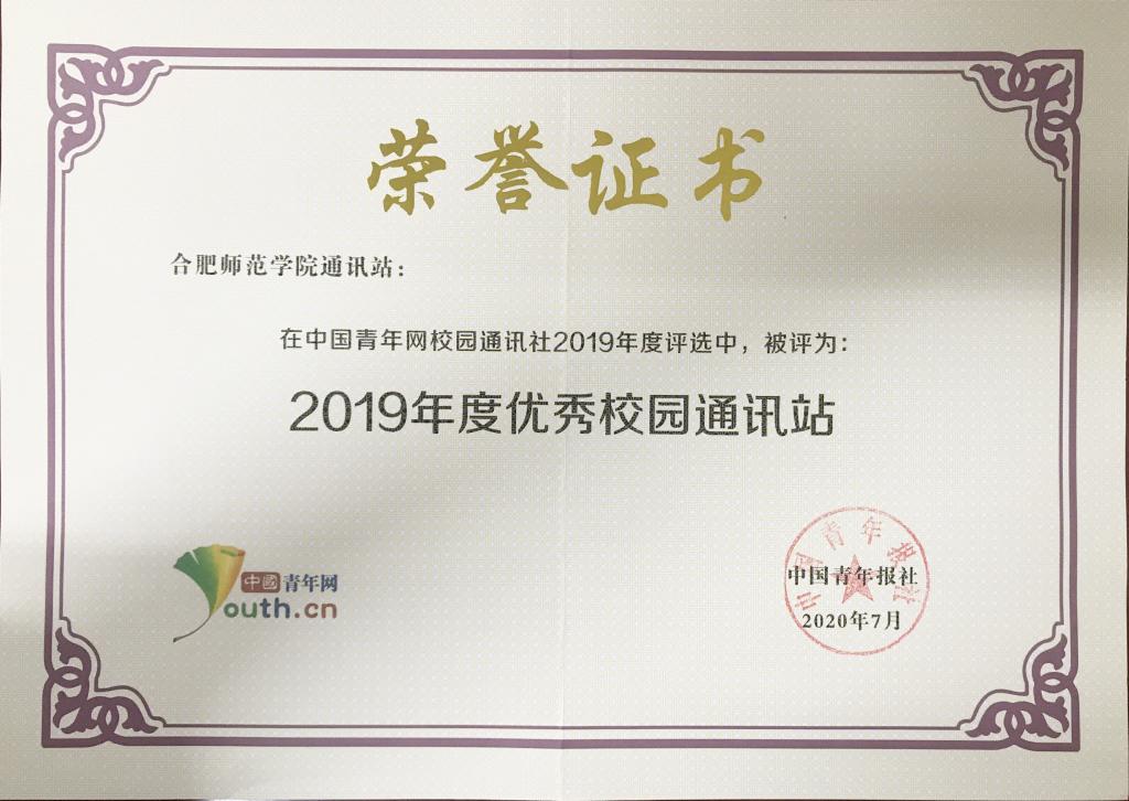 本网讯 近日,由中国青年网主办的“中国青年网校园通讯社2019年度评选活动”结果揭晓,beat365校园通讯站获评“优秀校园通讯站”,校团委王露获评“优秀通讯站指导教师”,合师青年传媒中心黄慧同学获评“优秀通讯员”。